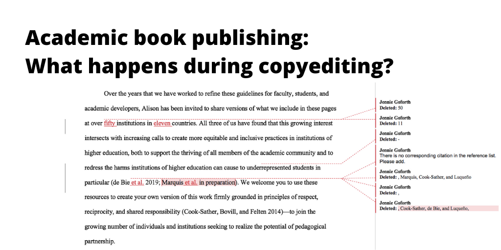 HomeBlogStudying EL Academic book publishing: What happens during copyediting?by Jennie GoforthFebruary 7, 2020 Share: Section NavigationSkip section navigationIn this sectionBlog Home AI and Engaged Learning Assessment of Learning Capstone Experiences CEL News CEL Retrospectives CEL Reviews Collaborative Projects and Assignments Community-Based Learning Data Literacy Diversity, Inclusion, and Equity ePortfolio Feedback First-Year Experiences Global Learning Health Sciences High Impact Practices Immersive Learning Internships Learning Communities Mentoring Relationships Online Education Place-Based Learning Professional and Continuing Education Publishing SoTL Reflection and Metacognition Relationships Residential Learning Communities Service-Learning Signature Work Student Leadership Student-Faculty Partnership Studying EL Supporting Neurodivergent and Physically Disabled Students Undergraduate Research Work-Integrated Learning Writing Transfer in and beyond the University Style Guide for Posts to the Center for Engaged Learning Blog This post is the second installment of CEL’s series on the process of academic book publishing. We are demystifying the process of how your research becomes a final product. If you missed our first post, check out Jessie Moore on What’s the process for publishing a (SoTL) book? Once an author has completed their manuscript, it’s first submitted to the acquiring or series editor. The editor will review the work, and they will sometimes send it out to additional reviewers. Generally, they will send back extensive comments within a few weeks, and authors will have time to tweak or rewrite certain portions of the book. On the next submission of the manuscript, the editors may want additional changes, or they may give the book the green light to move into production. The production process is long, with many players involved. I’m Jennie Goforth, the Center for Engaged Learning’s managing editor – the person who shepherds manuscripts through the production process. In this post, we’ll cover the first step in production: copyediting. Why have a copyeditor? Your publisher will have a copyeditor read through and mark up your manuscript. Why? The first goal, of course, is to catch errors, typos, and inconsistencies that you and your acquiring editor may have missed. A fresh pair of eyes is always useful to notice problems that authors may be too close to see. Second, the copyeditor will make the manuscript adhere to your publisher’s style – things like using the serial comma, spelling out numbers, capitalizing titles, etc. Here at CEL, we (like many academic publishers) follow the Chicago Manual of Style. And lastly, copyeditors prepare the manuscript for typesetting by removing formatting, extra paragraph returns, etc. that will get in the way once the document is entered into the layout software. Some authors may be wary of having a stranger messing around with their carefully written text. But good copyeditors will follow the three watch words given to us by Carol Saller, a well-known editor at Chicago University Press (2009, 14): Carefulness – A copyeditor will read through your manuscript sloooooowly (usually twice!), looking at every single word and every single piece of punctuation, examining it to make sure it’s correct and appropriate. Transparency – Your copyeditor will show you every change they make, usually using Track Changes in Word. There won’t be any surprises in your final text. Flexibility – A good copyeditor is going to give you some leeway. If you feel very strongly that that word should be capitalized, or that quote should be introduced by a colon, not a comma – then that’s okay. Our ultimate goal is clarity for the reader. If readers won’t be confused by it, then we’ll often go with the author’s preference. Your copyeditor will do their best to catch all errors, query anything they think needs clarification, and ensure that the writing will make the most sense to the greatest number of readers. No copyeditor will catch every single error, and a lot of their decisions are subjective. The Copyeditor’s Handbook says “Ideally, copyeditors set right whatever is incorrect, unidiomatic, confusing, ambiguous, or inappropriate without attempting to impose their stylistic preferences or prejudices on the author.” Copyediting shouldn’t change your writing substantially, just make it a bit tidier. What are the most common problems we see? Problems with parallel structure among clauses and subject/verb agreement, missing or incorrect citations or cross references, and some intricacies of grammar that are tricky for many, like that vs. which, misusing colons and semicolons, etc. Want to test your inner grammarian? Try the Chicago Style Workouts, quizzes from the folks at the Chicago Manual of Style. The process Copyediting can take anywhere from 3-8 weeks, depending on the complexity of the manuscript and how heavily edited the text needs to be. The copyeditor will use Track Changes in Word to show every edit they make. They will also create a style guide for your book, which is a record of every decision they’ve made during the edit (for example, “OK” not “okay”; spell out numbers under 100; course names should be roman type, headline style). This document helps them be consistent about stylistic choices throughout the manuscript, and it also communicates those choices to the authors. Authors will then have time to review the copyedited manuscript. Your copyeditor will send you the Word document with Track Changes turned on, so you can review all the edits that were made. You’ll also need to answer all the questions (queries) posed by the copyeditor. Each publisher has slightly different directions on how to respond to the copyedited manuscript. How to help your copyeditor Follow all formatting guidelines given to you before submission. It may seem like an endless list of tedious details, but all tho